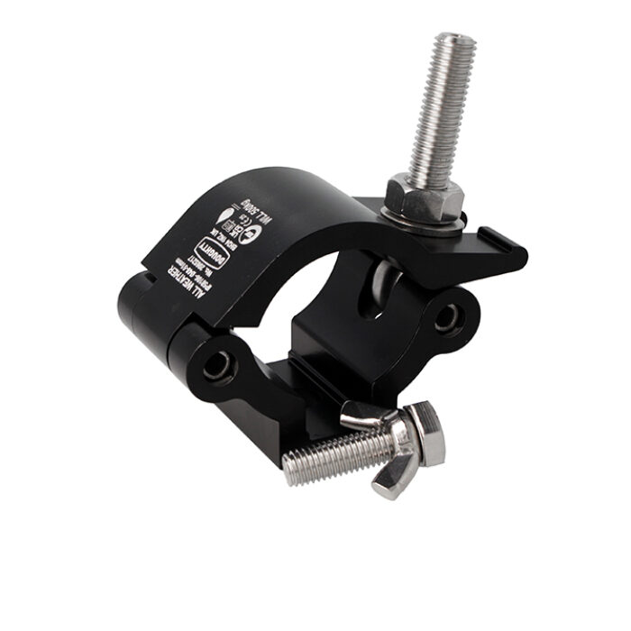 Ideal for use on trussing as it will not damage the cords. Supplied with a sachet of Copper Grease to prevent Stainless threads galling, and available in a polished silver or powder coated black finish.