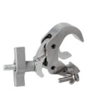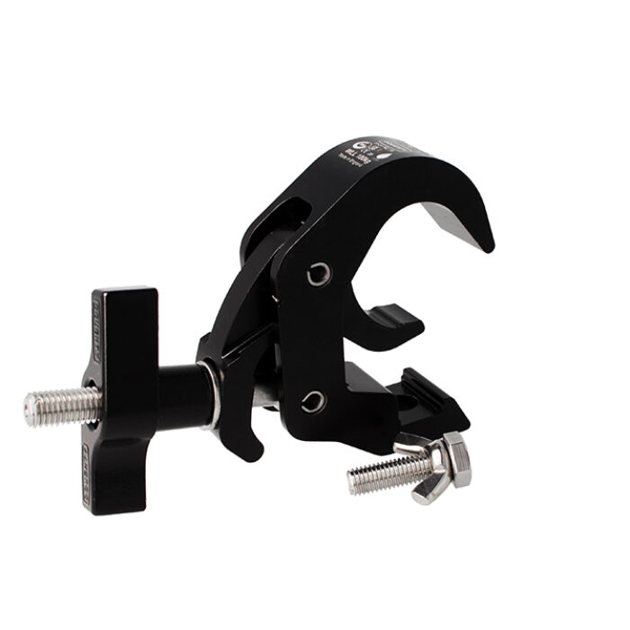 Ideal for hanging moving heads on trussing as it will not damage the cords. Available in a polished silver or powder coated black finish.
