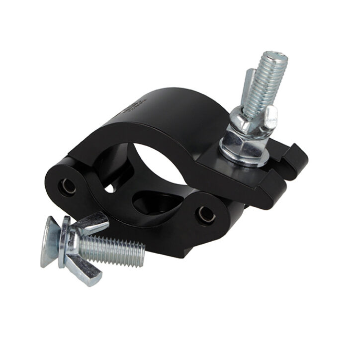 A high tensile extruded aluminium low profile clamp that is suitable for 48mm to 51mm (1.89″ – 2.01″) diameter tubes and is 50mm (1.97″) wide. It has a WLL of 500Kg and is supplied with an M12 X 45 countersunk bolt and wing nut. Available in polished silver or powder coated black.